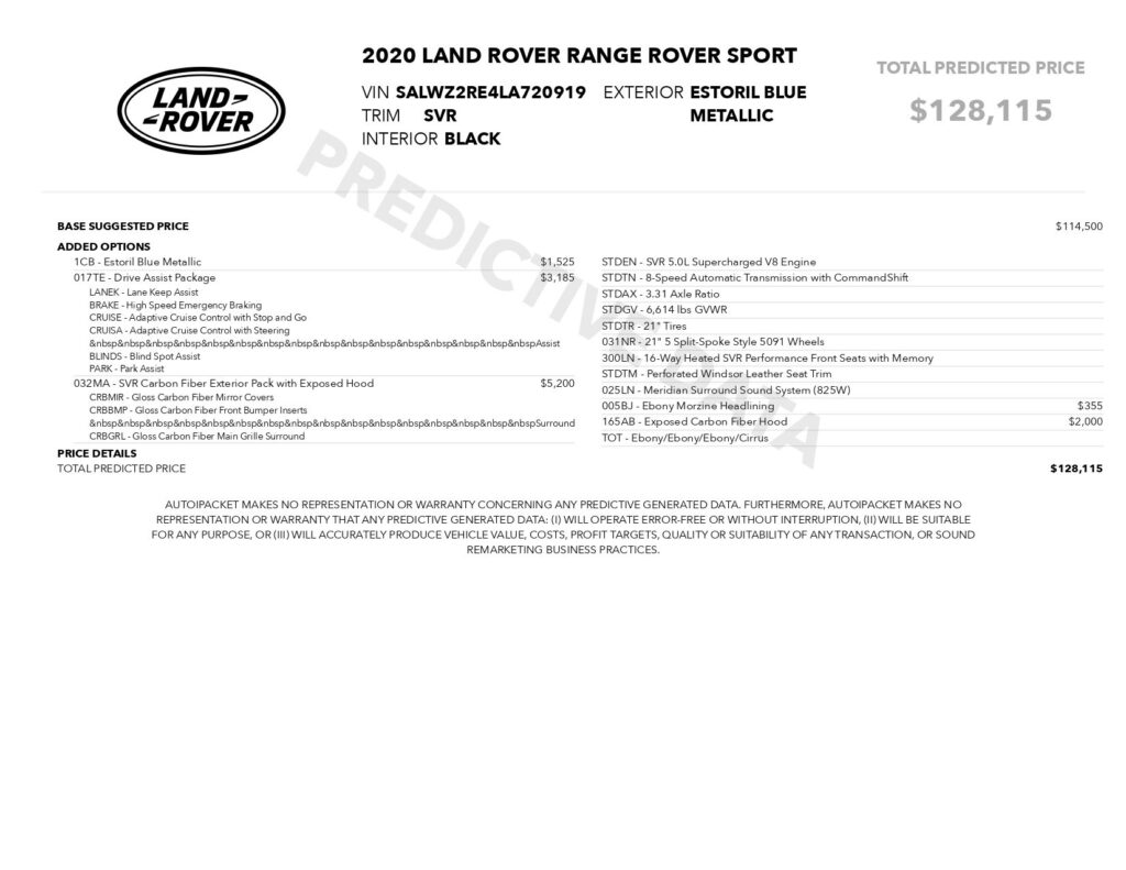 Welcome to TxtCharlie, your go-to place for purchasing cars in Fort Lauderdale. Our showroom is located at 2125 S Federal Highway, Fort Lauderdale, FL 33316, just 5 minutes from Fort Lauderdale Airport. We make out-of-state sales easy with nationwide shipping. To help you get a better feel for our inventory, we offer Facetime calls for virtual tours. Our reputation speaks for itself with over 900 Google reviews at 5 stars. We offer competitive, no-haggle pricing to take the stress out of buying a car. Our dealer fee is $1,399. Drop by to see our collection, and let us make your car-buying experience smooth and enjoyable. Private Tag Agency Fee of $399 in Florida State or $499 out of State.Clean CARFAX. Blue 2020 Land Rover Range Rover Sport SVR 4WD 8-Speed Automatic 5.0L V8Recent Arrival! Odometer is 8948 miles below market average!Awards: * ALG Residual Value Awards, Residual Value Awards