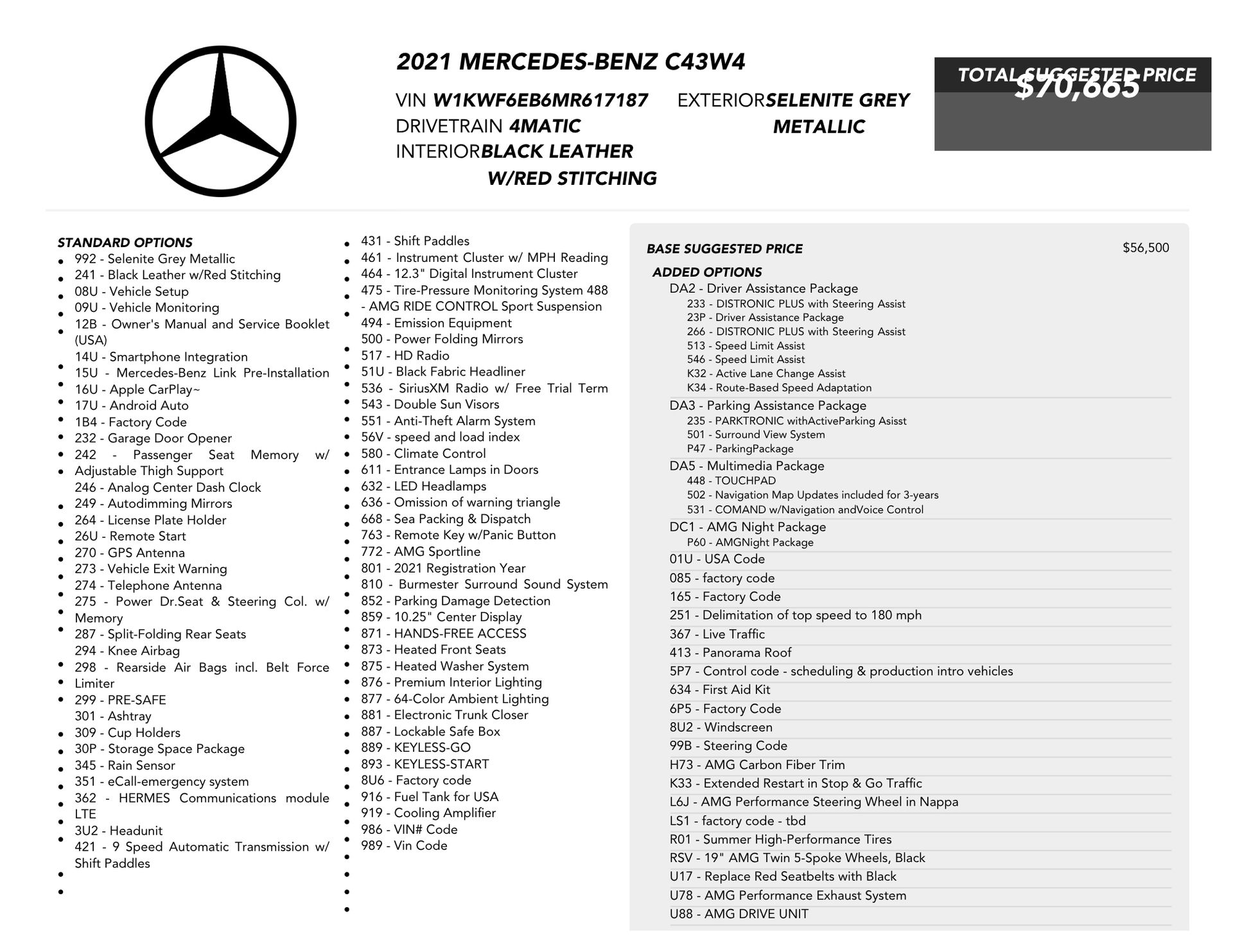 Welcome to TxtCharlie, your go-to place for purchasing cars in Fort Lauderdale. Our showroom is located at 2125 S Federal Highway, Fort Lauderdale, FL 33316, just 5 minutes from Fort Lauderdale Airport. We make out-of-state sales easy with nationwide shipping. To help you get a better feel for our inventory, we offer Facetime calls for virtual tours. Our reputation speaks for itself with over 1000 Google reviews at 5 stars. We offer competitive, no-haggle pricing to take the stress out of buying a car. Our dealer fee is $1,399. Drop by to see our collection, and let us make your car-buying experience smooth and enjoyable. Private Tag Agency Fee of $399 in Florida State or $499 out of State.Selenite Gray Metallic 2021 Mercedes-Benz C-Class C 43 AMG® 4MATIC® 4MATIC® 9-Speed Automatic 3.0L V6 BiTurbo4MATIC®.Recent Arrival! Odometer is 25751 miles below market average!Price: $ 30,000