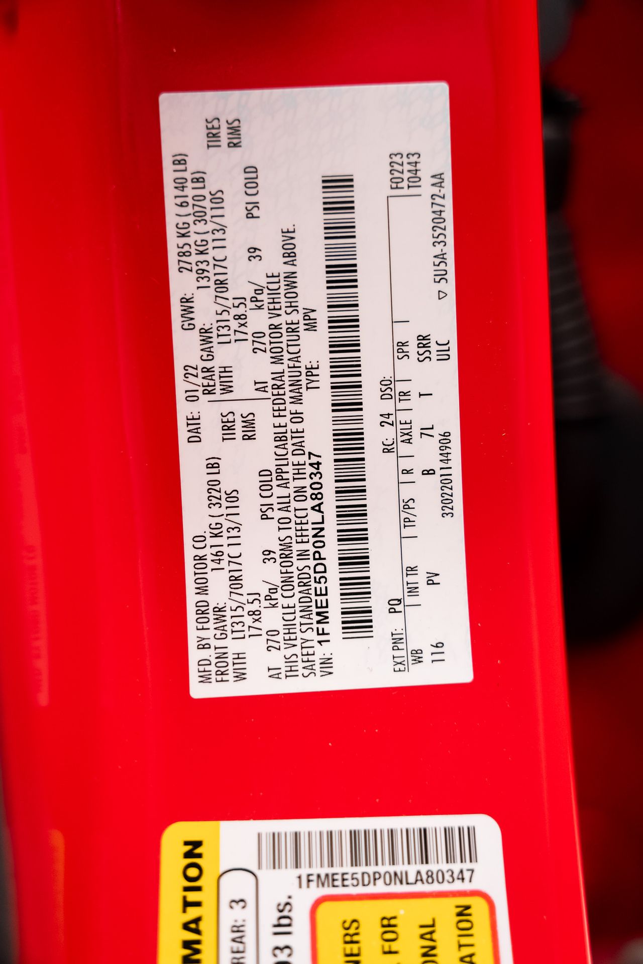 - VIN: 1FMEE5DP0NLA80347