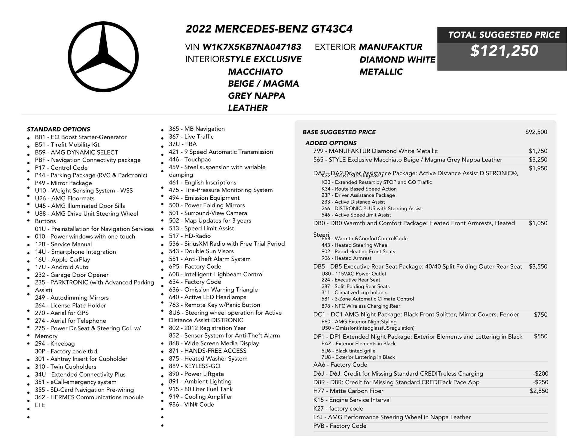 - VIN: W1K7X5KB7NA047183