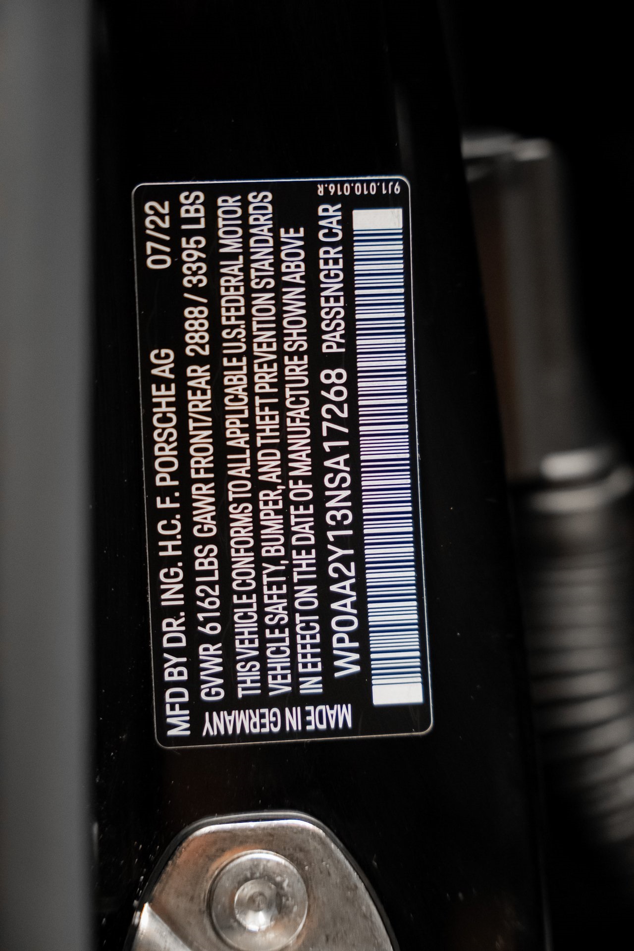 VIN: WP0AA2Y13NSA17268