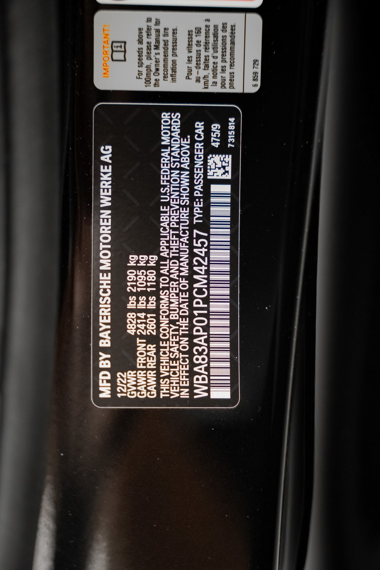 VIN: WBA83AP01PCM42457
