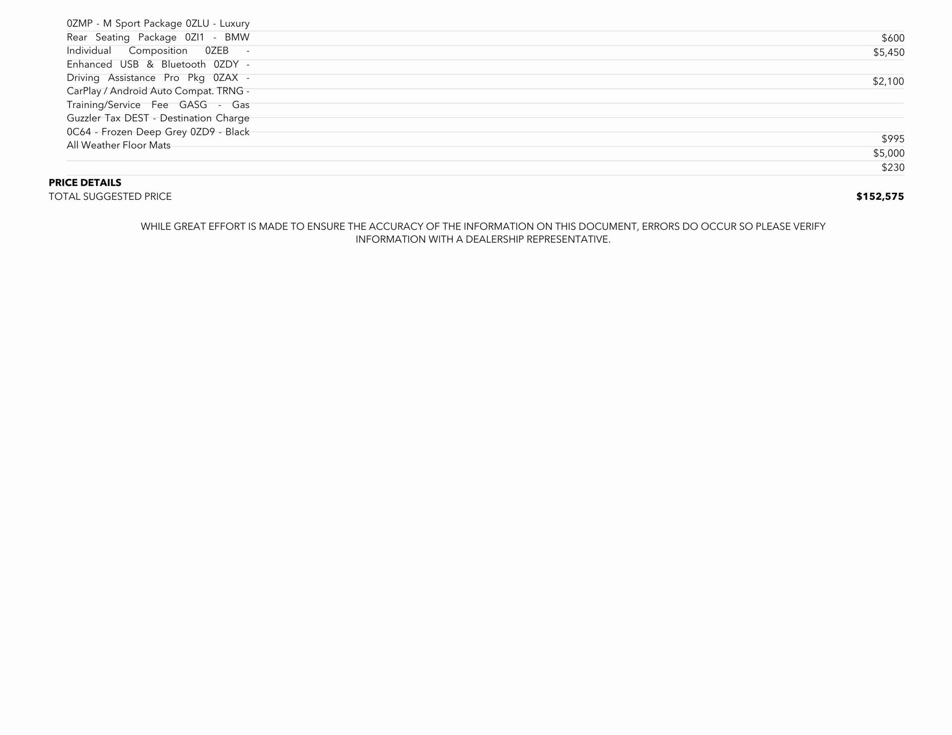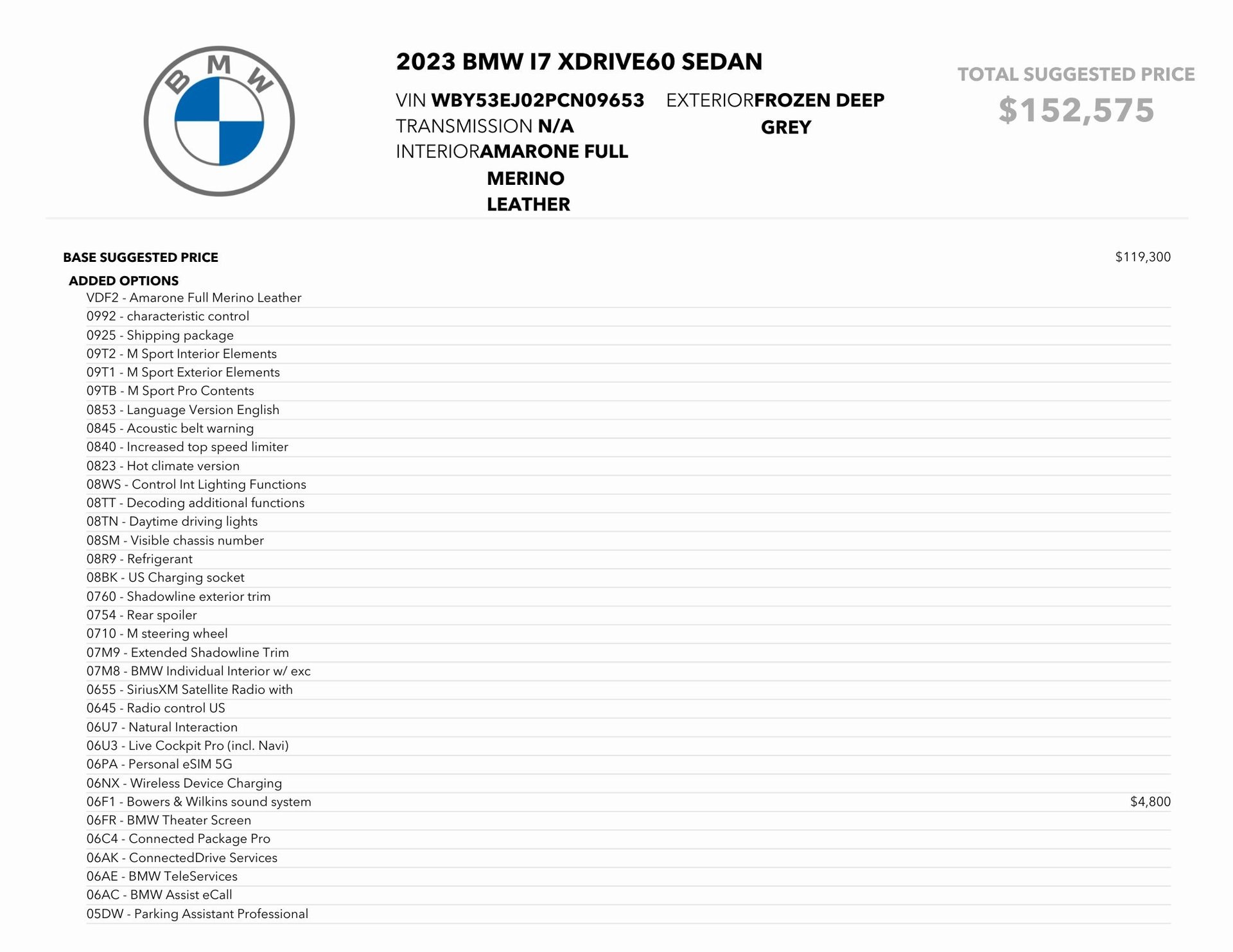 0ZI1 – BMW Individual Composition $5,450
