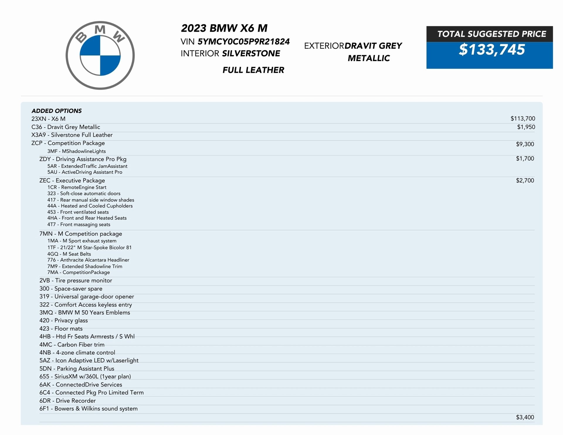 X6 M $113,700