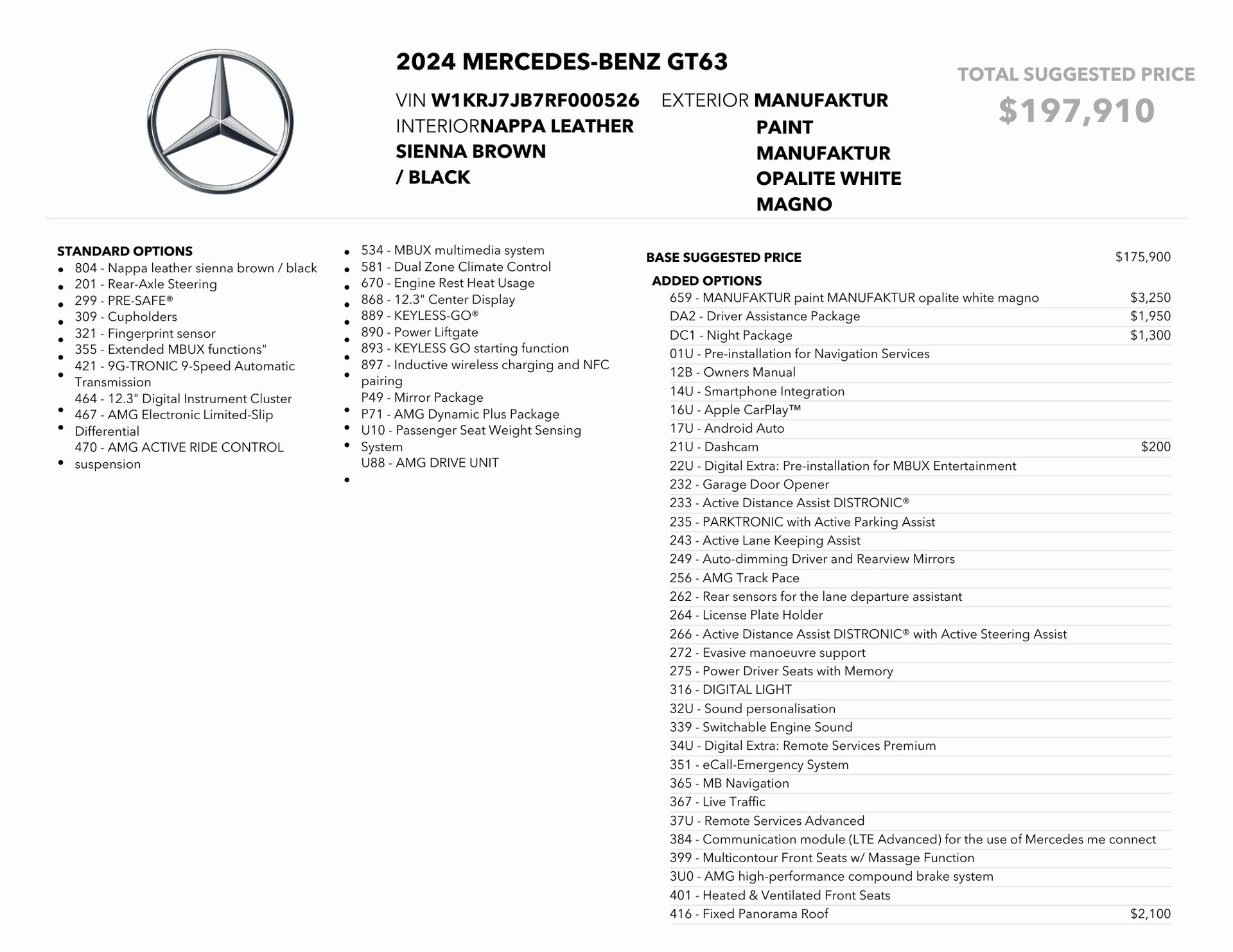 - Exterior: MANUFAKTUR paint MANUFAKTUR opalite white magno