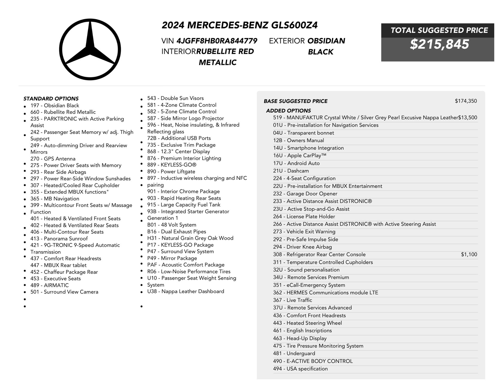 Welcome to TxtCharlie, your go-to place for purchasing cars in Fort Lauderdale. Our showroom is located at 2125 S Federal Highway, Fort Lauderdale, FL 33316, just 5 minutes from Fort Lauderdale Airport. We make out-of-state sales easy with nationwide shipping. To help you get a better feel for our inventory, we offer Facetime calls for virtual tours. Our reputation speaks for itself with over 1000 Google reviews at 5 stars. We offer competitive, no-haggle pricing to take the stress out of buying a car. Our dealer fee is $1,399. Drop by to see our collection, and let us make your car-buying experience smooth and enjoyable. Private Tag Agency Fee of $399 in Florida State or $499 out of State.Clean CARFAX. 2024 Mercedes-Benz GLS Maybach GLS 600 4MATIC® 4MATIC® 9-Speed Automatic V8V8.Recent Arrival!ADDED OPTIONS